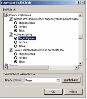 · Parancsfájlkezelés / Active Scripting: Engedélyezés