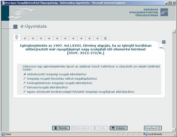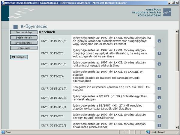 Kiválasztja, majd kitölti az elintézni kívánt ügyhöz tartozó űrlapot.