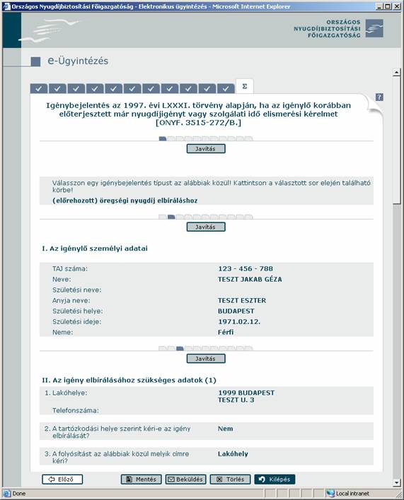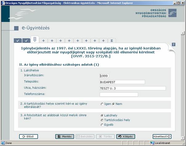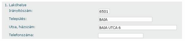 A helyes kitöltéshez segítséget kap Az űrlapmezők helyes kitöltése című fejezetben.
