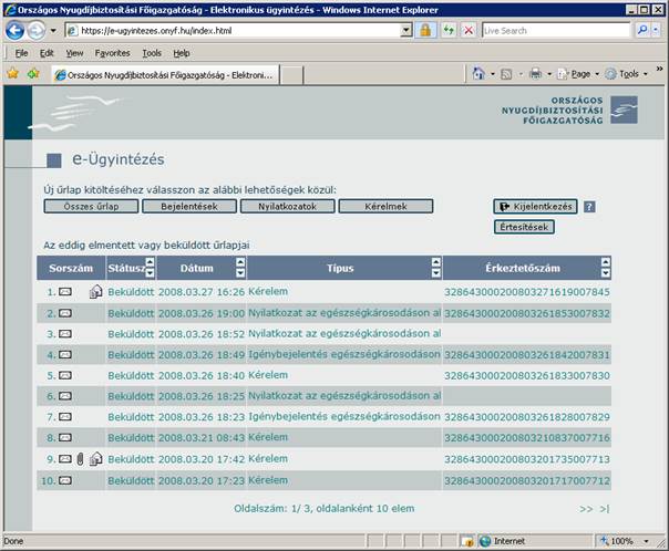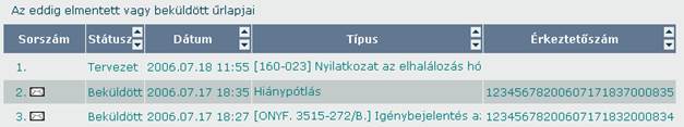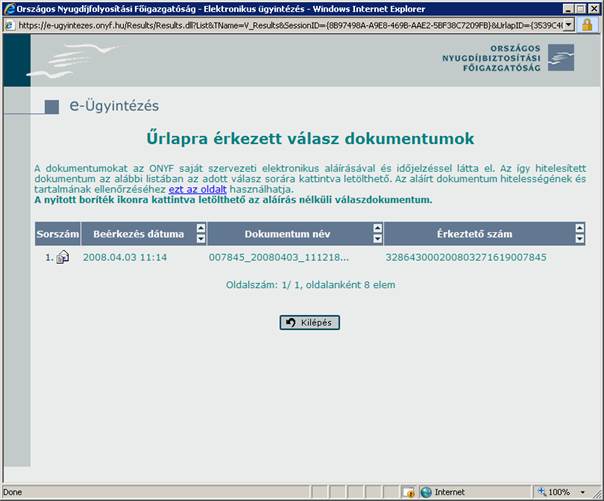 A hivataltól kapott válaszüzeneteket megtekintheti a felületen.